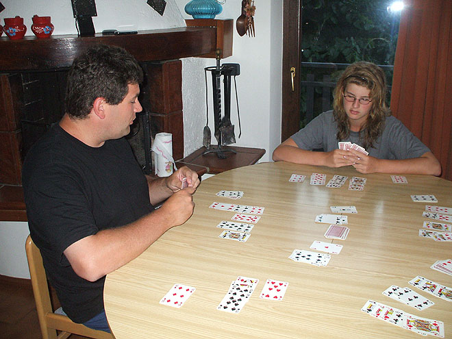 Carsten versuchte den 4 Mädels das Kartenspiel "O'Herl" beizubringen ...