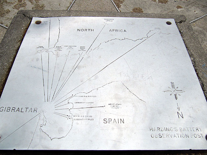 Übersicht mit Entfernungen: bis Tanger (oben rechts) sind es 56 km, bis Afrika 23 km