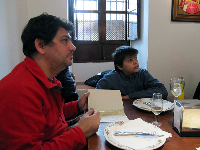 Jorge bettelt förmlich ums Essen ... nee, er mußte den Übersetzer und Besteller geben