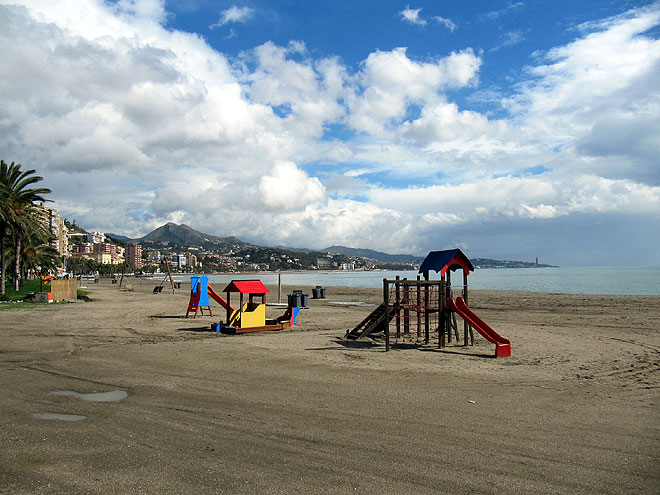 Der Strand in Málaga, leider ist es a) zu kalt und b) sind die Badesachen schon im Koffer ;o)