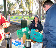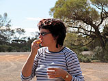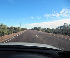 fahren wir anfangs nur im Dunklen - bei der Uhrzeit aber auch in Austra- lien kein Wunder. Während der Fahrt hört man meistens Marina und Olga re- den, denn sie haben einfach zu viel Erlebtes aus den letzten Jahren auszutau- schen. Nach etwa 300 km machen wir die erste große Pause, um unser Früh- stück in Form eines Picknicks in der Nähe eines Spielplatzes in Port Augusta zu machen. Langsam lugt nun auch die Sonne heraus und Tim nutzt die Gele- genheit nicht nur zum Essen, sondern auch um seiner Lieblingsbeschäftigung, dem Fußballspielen, nachzukommen. Für den 10-Jährigen ist die Fahrt natür- lich am langweiligsten, obwohl er sich mit seinem iPod und einer Fußballzeit- schrift erstaunlicherweise lange beschäftigen kann. |