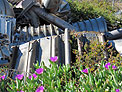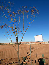 schlendern am Zaun des Kinos vorbei und wenden unsere Aufmerksamkeit |