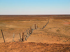 Hunde: wir erreichen den ebenfalls sehr berühmten "dog fence", ein ca. 5320 km langer Zaun, der sich durch die drei Bundes- staaten South Australia, Queensland und New South Wales zieht. Damit sollen die Schafe und anderen Nutztiere im Südosten des Kontinents vor den angriffslustigen Dingos geschützt werden, welche auch bekannt dafür sind selbst dann Beute zu reißen, wenn sie nicht gerade hungrig sind. Man sagt diesen Wildhunden nach, dass sie aus Spaß an der Freude jagen und so der Viehzucht natürlich großen Schaden zufügen. Leider ist dies nun schon die letzte Etappe unserer Radeka-Tour und wir müssen zurück zum Ausgangspunkt der Route. |