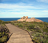 wir noch mehr Naturwunder dieser Insel erkun- den wollen, müssen wir leider schon wieder auf- brechen und gehen zurück zum Parkplatz. Auf dem Weg zu den Remarkable Rocks (diese Fel- sen konnten wir sogar schon vom Admirals Arch aus sehen) biegen wir noch einmal ab, um einen |