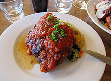 großzügigen Außenanlagen werden uns leider vorenthalten, statt- erfahren haben, ist es definitiv an der Zeit, das Angepriesene auch zu sich zu nehmen. Im Restaurant bestellt Olga sich ein Glas Two Whee- ler Creek-Chardonnay und einen Teller Marron (insgesamt 6 Hälften), während Carsten sich mit einem saftigen Steak eher als Fleischliebha- ber outet. Das Essen ist ausgezeichnet - der Tipp von Marina und Sa- scha ist Gold wert - und einfach alles, vom Fleisch über die Krebse bis zum Gemüse und den Kartoffeln, ist unbeschreiblich lecker. Da wir allerdings außerhalb der Saison und mitten in der Woche hier sind, ge- hören uns 50% der Aufmerksamkeit des Personals, die andere Hälfte gilt dem asiatischen Pärchen aus dem roten Auto. |