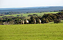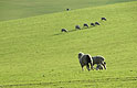 aus beruhigender Entfernung beäugen sie fünf der Wollliefe- |