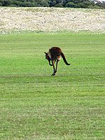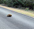 Sinne des Wortes das nächste Tier über den Weg: ein stachelbe- wehrter Echidna schnauft (wir haben es durchs offene Fenster gehört) eilig über die Straße. Was jetzt noch fehlt ist endlich mal ein Känguru, denn schließlich trägt die Insel ja sogar deren Namen. |