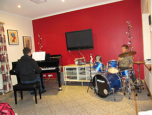 Dann geben Tim an seinem geliebten Schlagzeug