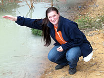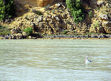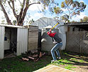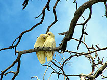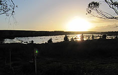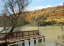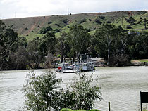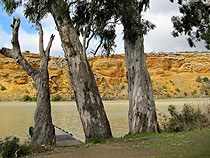 im Winter die Tage in Australien genau so kurz sind wie die in Eu- ropa, bahnt sich zum späten Nachmittag so langsam ein Untergang der Sonne an. Leider wird es deshalb auch Zeit, dass wir zurück nach Adelaide fahren. Diesmal entscheidet sich Sascha für den Weg ent- lang des Murray Rivers, um uns noch mehr von der Gegend zeigen zu können. Dafür setzen wir in Walker Flat mit der kostenlosen (!) Auto- fähre über und halten oberhalb der Steilküste am Foster Lookout, um vor der Abfahrt noch den Blick über das weiträumige Tal genießen zu können. Von hier oben sind der Fluss und seine Umgebung ein be- zauberndes und überwältigendes Bild. |