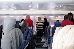 steigen wir in eine kleinere Maschine, aber nicht alle Sitzplätze sind belegt