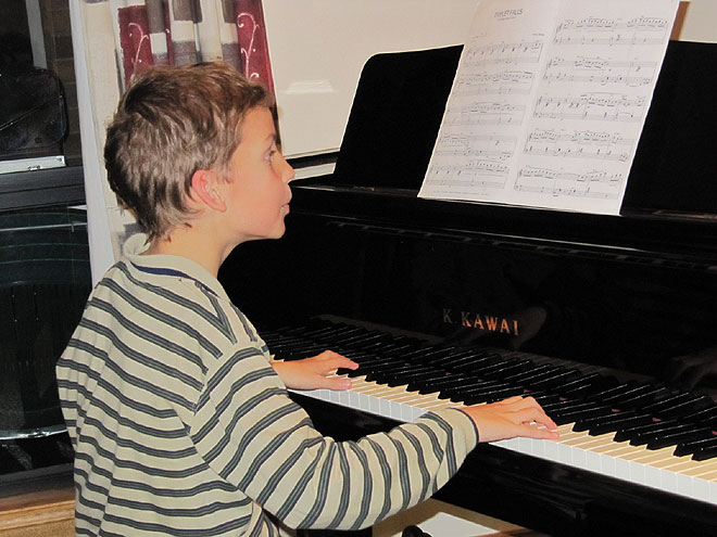 Tim übt fleißig am Flügel - wohl aber auch, weil Marina regelmäßig Klavierunterricht gibt