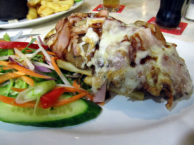 ... doch mit soetwas hat wohl niemand gerechnet: Fleisch auf Fleisch auf Pommes