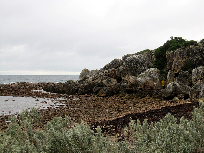 Hmmm, eigentlich soll der für seine Sandstrände berühmt sein - da drüben, ein Schild (s.u.)