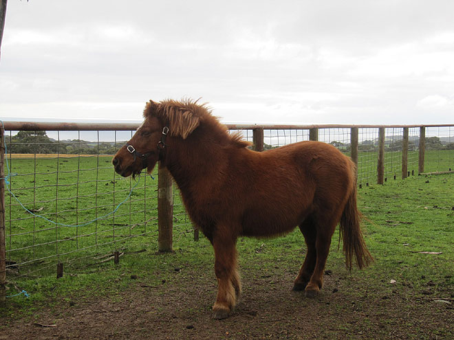 Paul sammelt am Gatter sowohl die Besucher als auch dieses Pony ein