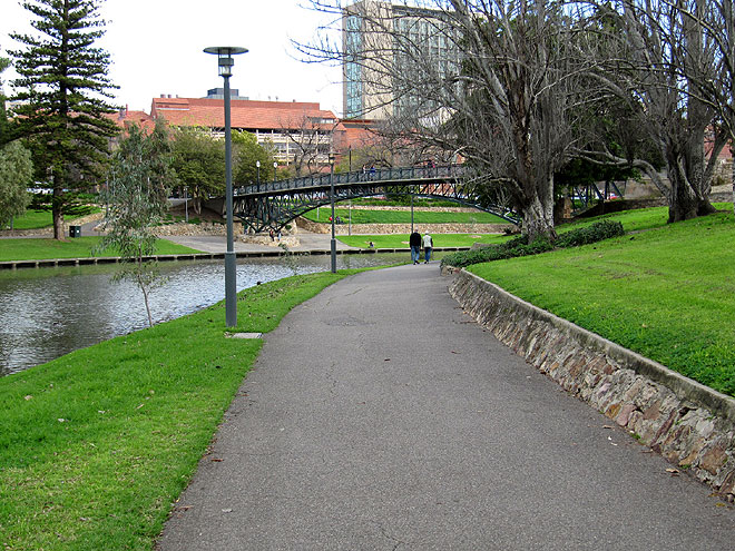 Immer am Torrens River entlang, gehen wir zurück zum Auto