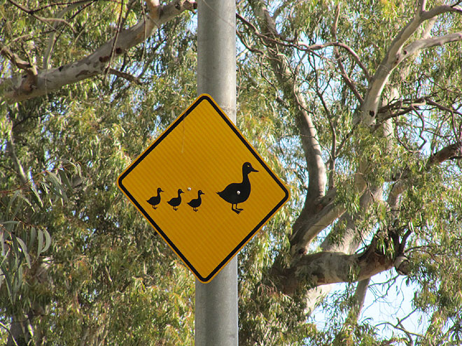 Eine DIN für Hinweisschilder gibt es wohl nicht, denn auf dem letzten war nur ein Entenkind
