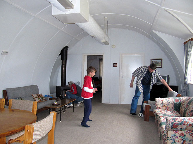 Carsten und Tim beschäftigen sich mit etwas Indoor-Fußball