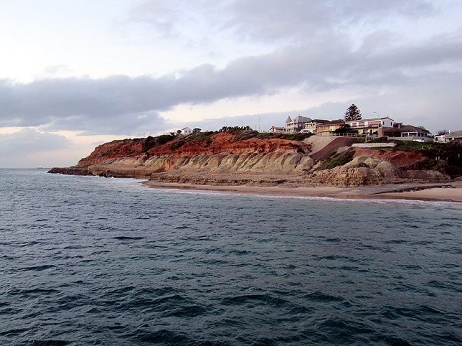 Wasser, Sandstrand und die roten Klippen am Christies Beach - malerisch !