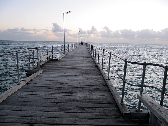Die Pier ragt erstaunlich weit ins Wasser rein