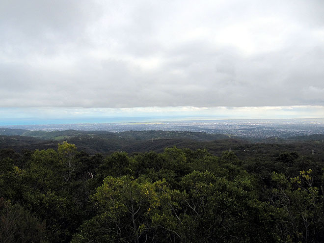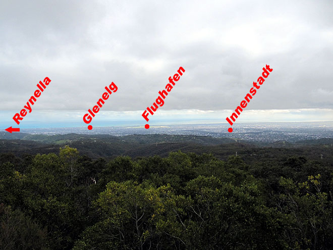 Blick in Richtung Meer, über Reynella, Glenelg und Adelaide hinweg (s.u.)
