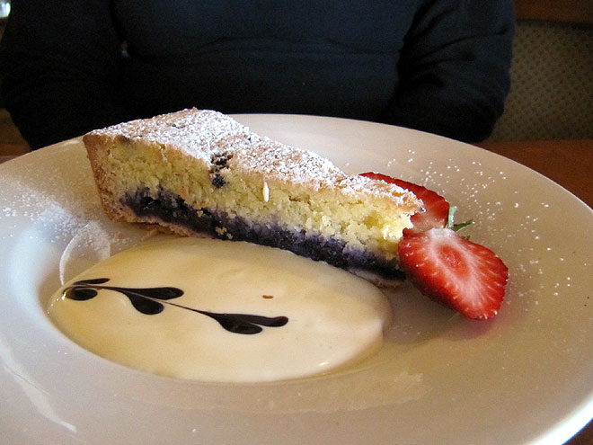 Olga möchte zum Nachtisch noch unbedingt den Blaubeerkuchen mit Mandeln probieren