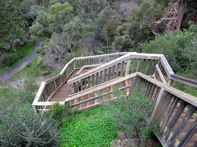 Diese Holztreppen führen zur höhergelegenen Höhle Giant's Cave