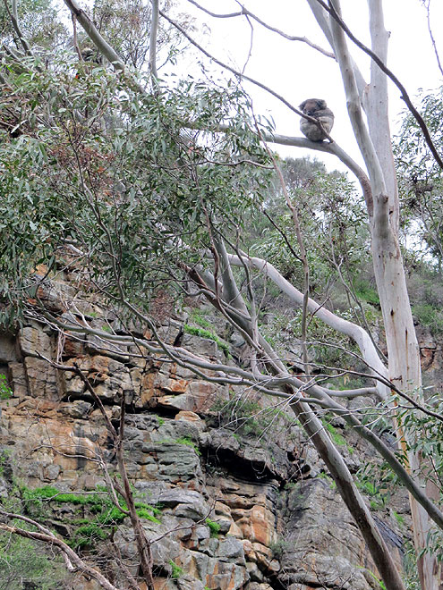 ... etwas weiter Richtung Wasserfall sitzt ein Koala hoch oben im Baum.