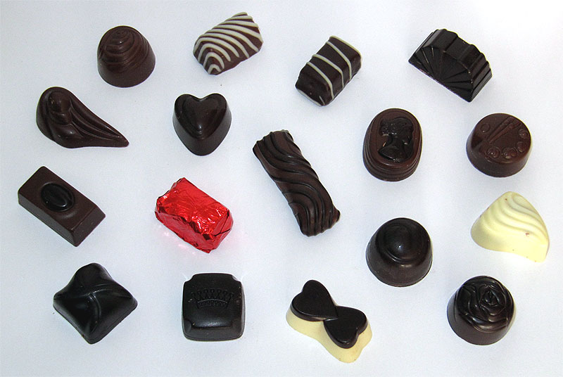 Pralinen - man weiß nie was man bekommt." ... werfen wir