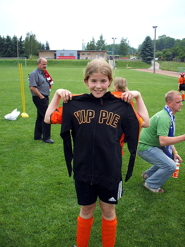 08.07.2007 | Stephanie fährt zu ihrem letzten Turnier mit den E/F-Juniorinnen nach Kreischa, danach wird sie aufgrund ihres Alter nur noch bei den C/D-Mädels mitspielen dürfen. Da sich der Rest der OLCAs auf dem Sportplatz der SG Gittersee einbringt, kann sie leider keiner dabei begleiten. |