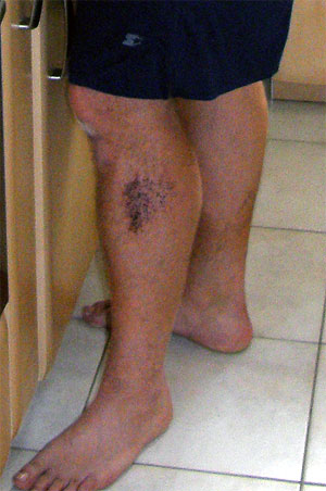 27.07.2008 | Noch einmal fahren Carsten auf Inlinern und Olga auf dem Fahrrad die Strecke zwischen Autobahnbrücke und Fährgarten hin und zurück (siehe 20.07.), allerdings bringen sie nicht nur Olgas Fotos mit nach Hause, sondern leider auch die Folgen eines kleinen, unsanften "Bodenküssers". >>_Fotos_folgen_<< |