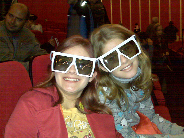 01.11.2008 | Ein Besuch des umgebauten Rundkinos in Dresden steht schon länger auf der Wunschliste der OLCAs und endlich ist es soweit. Die Entscheidung fällt auf den 3D-Film "Ocean Wonderland", welcher mit dem Slogan "Der Film wird zu einem Taucherlebnis aus erster Hand - jedoch mit 3D-Brille anstatt Taucherbrille !" beworben wird ... aus modischer Sicht ist eine Taucherbrille doch etwas kleidsamer: Olga mit 3D-Brille & Kinder mit 3D-Brille - oder nicht ? |