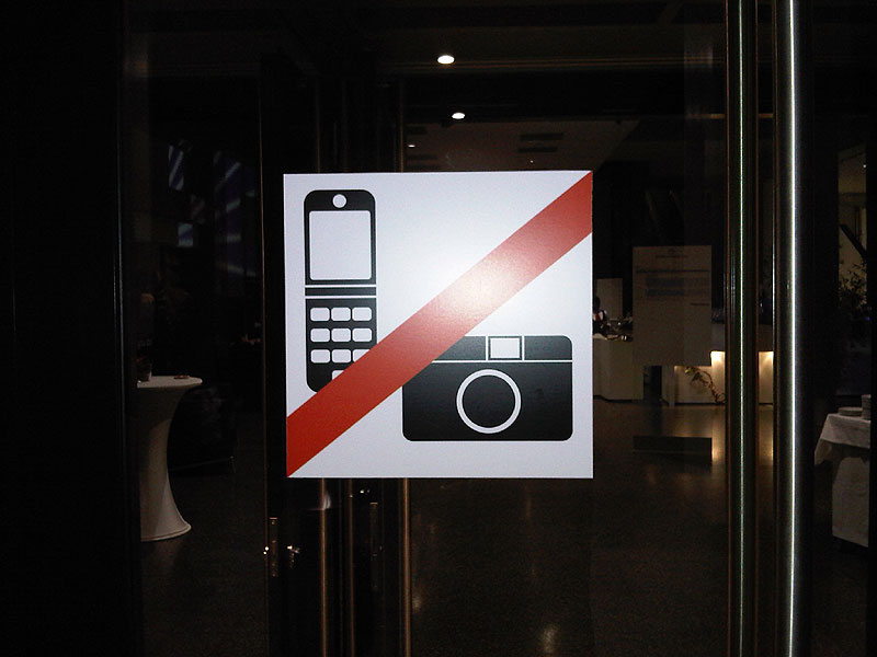11.11.2009 | Carstens Schnappschuß des Tages: das absolut passende Schild am Eingang einer Veranstaltungshalle, wo jeder Besucher mindestens einen Blackberry (fast alle Modelle haben mittlerweile eine Kamera) in der Tasche hat ;o) |