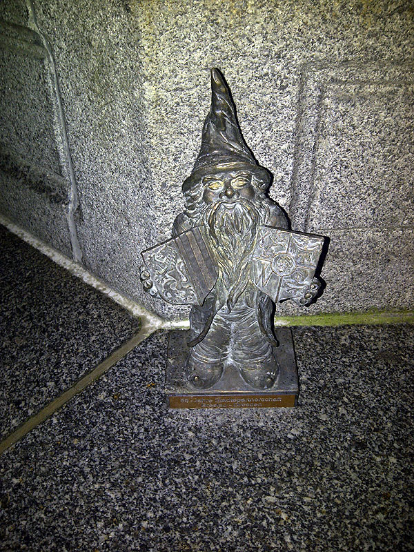 12.03.2015 | Olga hat vor drei Tagen mit einer kleinen Bemerkung den Ablauf des heutigen Abends beeinflußt, denn wenn sie schon Anfang der Woche berichtet, daß sie einen Heißhunger auf Schnitzel verspürt, kann der Weg nur unweigerlich in ein solches Restaurant führen. Statt "Schnizz" gehen die beiden aber diesmal zum "Schnitzelgarten" in der Weißen Gasse. Nach den Varianten "Hamburg mit Spiegelei" und "Försterin mit Pilzen" machen die beiden noch einen kleinen Rundgang um das Rathaus und begeben sich auf die Suche nach dem Breslauer Zwerg, welches im Februar 2015 als Geschenk der polnischen Partnerstadt übergeben wurde. Sie werden schließlich am Hietzigbrunnen bzw. Rathausbrunnen fündig. >>_Beweisfoto_<< |