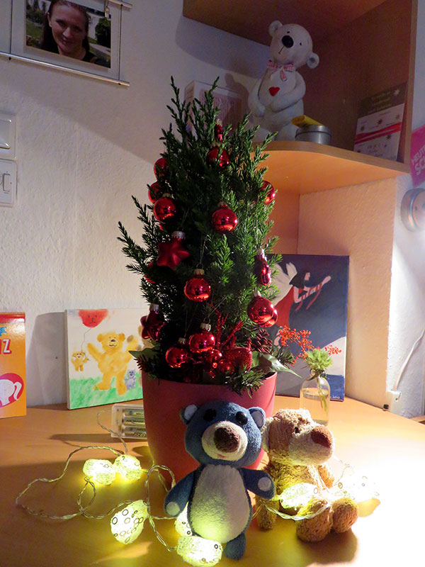 03.12.2015 | Leider bricht schon der letztmögliche Tag von Carstens intensiver Sportbemühungen (diesmal mit 45 min SYNRGY360 und einem 3-Stundenfilm auf den Crosstrainer) an, denn die Handwerker sind pünktlich mit der Renovierung fertig geworden, sodaß die Arbeitsplätze morgen schon wieder eingerichtet werden können. Olga trifft sich am Nachmittag mit Andrea zum Bummeln - zuerst wollen sie zum Tranquillo-Lagerverkauf hinterm Neustädter Bahnhof und danach zum Etsy Pop-Up Shop in der QF-Passage am Neumarkt. Glücklicherweise halten sich die Ausgaben noch in einem erträglichen Rahmen ... |