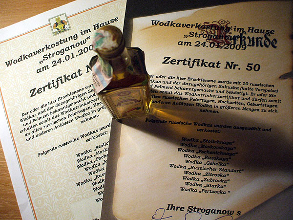 Vor einigen Wochen, bei irgendeiner Fete in der Casa OLCA, wurde die Idee geboren, an einer Wodkaverkostung im Restaurant âStroganowâ mitzumachen. Ich konnte schon immer einen guten Wodka aus Russland oder aus der Ukraine auftreiben und meinen GĂ€sten anbieten, aber 10 verschiedene Sorten auf einmal â das habe ich nicht mal versucht.