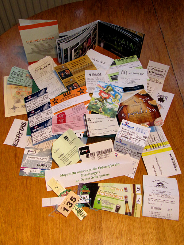 • Erinnerungen an Silvester (Eintrittskarten, Los- bzw. GlĂŒcksnummer, Tischreservierung, Konfetti, …)