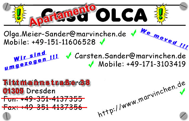Wer unsere neue Adresse braucht (z.B. fĂŒr Weihnachtspost   đ   ), sie ist auf unserer Homepage (Button „Ruf“) zu finden.