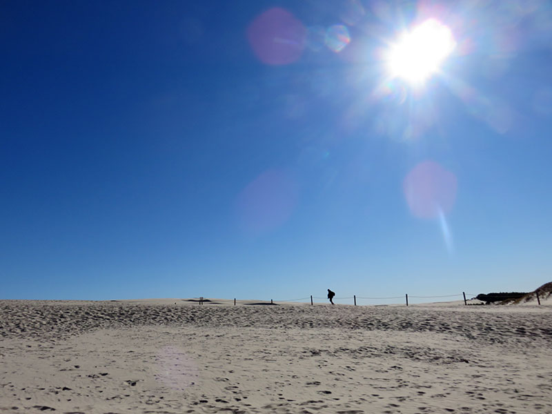 NatĂŒrlich wanderten wir nicht nur durch die Sandberge, sondern genossen auch den fabelhaften Strand in diesem Nationalpark: