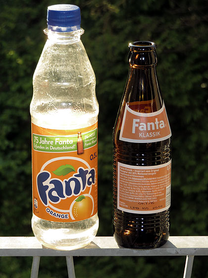 Naja, ob das wirklich für alles gilt, möchte ich an dieser Stelle nicht bestätigen, aber bezüglich Fanta gebe ich dem Ganzen völlig Recht ! Ich habe immer gerne erzählt, wie gut mir damals noch eine Fanta geschmeckt hat, bevor man Ende der 80er der Meinung war, sie noch fruchtiger und süßer zu machen … nun habe ich sogar endlich mal die Chance bekommen, dies auch manchen Leutchen zu beweisen. Dank Coca-Cola gibt es derzeit nämlich die Sonderaktion „Fanta Klassik – Inspiriert vom Original (Rezeptur mit 30% Molkenerzeugnis)“. Ja, DAS ist wirklich der Geschmack meiner Kindheit und Jugend. Als Olga und ich vor ein paar Tagen die Klassik-Flaschen im Kaufland gesehen haben, nahmen wir mal eine mit, um auszutesten, ob es wirklich die alte Rezeptur ist. Heute dann der Einkauf einers Viererpacks und einer kleinen, aktuellen Fantaflasche, um mal eine direkte Gegenüberstellung zu haben.