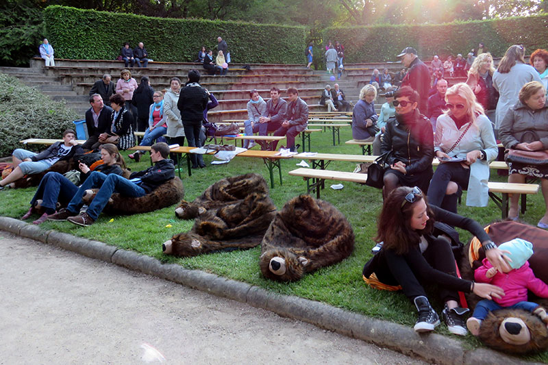 Dieses Jahr und zwar genau am jetzigen Wochenende findet im Dresdner Großen Garten ein Festival der russischen Kultur namens FEELRUSSIA statt. Ich habe mich für gestern dort mit Anna verabredet, um die eine oder andere Veranstaltung mit ihr zusammen zu erleben. Das Programm war allerdings auf einen ganzen Tag, sprich von 10 bis 22 Uhr, ausgelegt und das auf zwei volle Tage. So habe ich nur einen kleinen Teil, z.B. etwas von dem Konzert von Yuri Bashmet mitbekommen, das Meiste des Auftritts vom Duo Kratschkowski aus Dresden, einiges vom Orchester namens Russkij Stil (Russischer Stil) und das Gros des Auftritts von den drei faszinierenden Klavierspielern Bel Suono – und das ist nur ein Bruchteil des gesamten Kulturprogramms! Dazu gab es Bücherstände, eine Fotoausstellung, traditionell-russisches Puppentheater und für die zahlreichen Besucher unglücklicherweise nur ein einziger Kiosk mit Getränken und Essen. Kulinarisch war das Fest leider eine Enttäuschung, denn vorher versprach der Internetauftritt allerhand russische Leckereien, die nun überhaupt nicht da waren. Es gab lediglich Pelmeni, den Gerüchten nach waren sie wohl auch sehr lecker, aber als Carsten mich um 16 Uhr zum Festival brachte und sich auf die Teigtaschen freute, waren schon komplett ausverkauft …