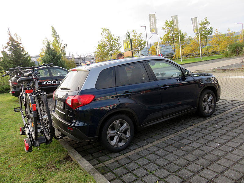 FĂŒr unseren Sander-Mobil war das der erste große Ausflug in die Ferne und dazu gab es noch die Premiere mit dem neuen FahrradtrĂ€ger obendrauf. Hat Carsten beim allerersten Aufbauversuch vor der Abreise noch recht lange gebraucht, wurde er jeden Tag immer routinierter im Auf- und Abbau unserer Drahteselchen und der AnhĂ€ngerkupplungserweiterung.