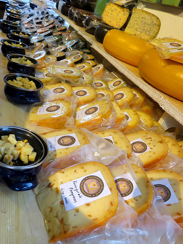 Die NiederlĂ€nder im Ganzen, die HollĂ€nder und die Friesen im Speziellen sind natĂŒrlich auch besonders berĂŒhmt fĂŒr leckeren KĂ€se, der uns ebenfalls ĂŒberall begegnete und superlecker geschmeckt hat. Dann gab es davon auch noch sooooo viele Varianten und man konnte in einem Laden in Giethoorn sogar fast von JEDER kosten!