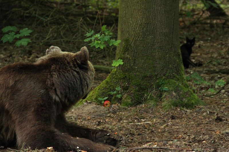 Aber es geht ihnen offensichtlich auch mit und ohne Besucher sehr gut in ihrem großzügig angelegtem und nach Bärenbedürfnissen gestalteten Wald. Neben ein paar Menschen scheint es gelegentlich auch mal andere, tierische Besucher hierhin zu locken: