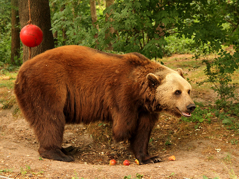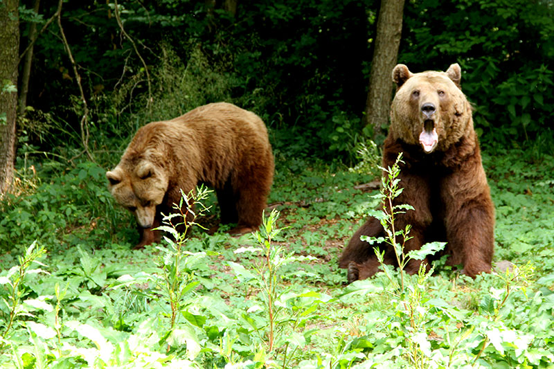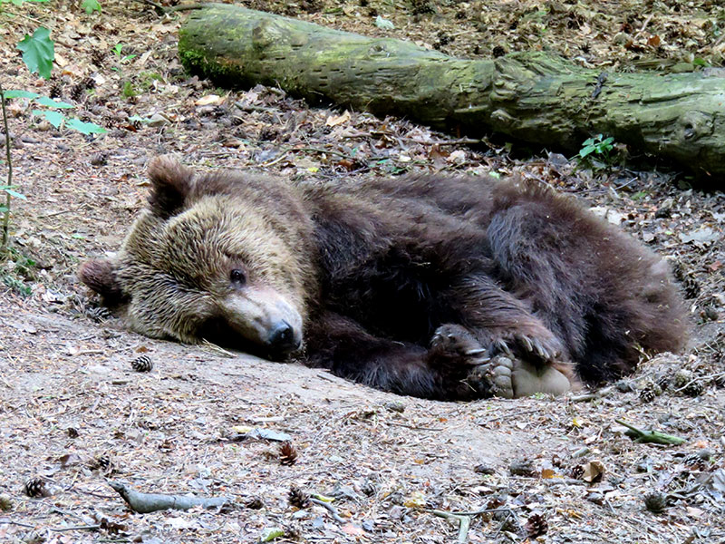 Hier haben Bären, mit denen das Leben es vorher offensichtlich nicht immer all zu gut meinte, auch wieder gut lachen – diesem fehlt die rechte Vorderpfote komplett, bei einem anderen ist die Linke nach einer Verletzung während seiner Gefangenschaft arg verkümmert: