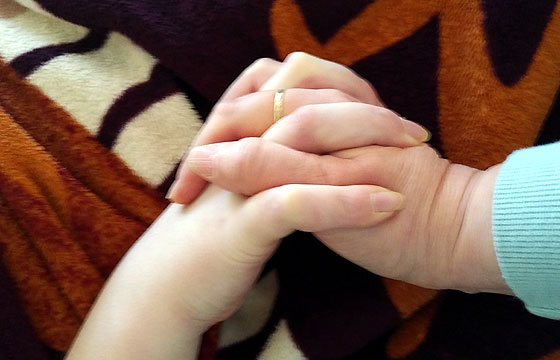 Wenn ich Stephanie frage, ob sie Kuscheln möchte, dann antwortet sie fast immer mit Ja und auch wenn ich dann gewisse Anstrengungen von ihr verlangen muss, ist sie bereit, dafür etwas zu tun. Sie hebt den Kopf, sie beugt sich etwas hervor bzw. in meine Richtung und sie zeigt erste noch sehr-sehr zaghafte Versuche einer eigenen Umarmung mit Armen und Händen. Allerdings löst sie sich sehr viel schneller als früher wieder aus der Umarmung heraus und Kuscheln ist derzeit immer nur von kurzer Dauer. Der Grund dafür scheint aber sicherlich mehr bei der Anstrengung zu liegen, als dass sie es einfach nicht mehr mag.