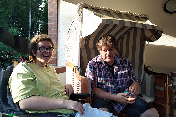 Vor allem das Sprechen rückt für uns derzeit gewaltig in den Vordergrund, denn nach dem Umzug – so haben wir es zumindest in dieser ersten Woche empfunden – konnten wir bislang nur sehr wenige unserer bisherigen Arme- und Händeübungen durchführen, da sie nun vornehmlich im Rollstuhl sitzt und ihr (noch) so etwas wie ein Tischchen oder eine Ablage fehlt. Also verlegen wir unsere Übungen derzeit mehr in die Durchführung vieler und langer Gespräche, das Stellen und Beantworten von Fragen und die Vorbereitung darauf, dass morgen ihre Schwester aus Österreich für ein paar Tage in den Hohen Norden kommt.