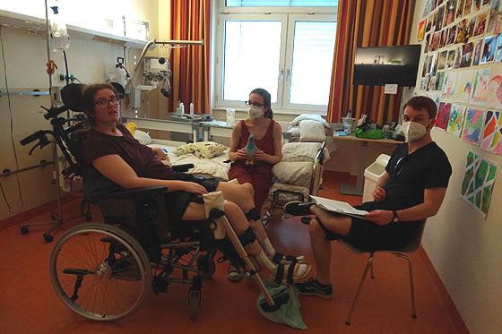 Wir haben bislang in dieser Intensiv- und Rehaeinrichtung verschiedenste Krankheitsbilder kennenlernen dürfen. Zum einen natürlich das, was auch Stephanie hat: eine Unterversorgung des Gehirns mit Sauerstoff aufgrund eines Unfalls, einer Krankheit oder eines Suizidversuches. Aber auch neurologische Schädigungen aufgrund einer nicht erfolgreich verlaufenen Operation am Rücken, Kinder mit Down-Syndrom/Trisomie 21, Muskelerkrankungen, Krebserkrankungen mit neurologischen Komplikationen oder auch Epilepsie werden hier behandelt.