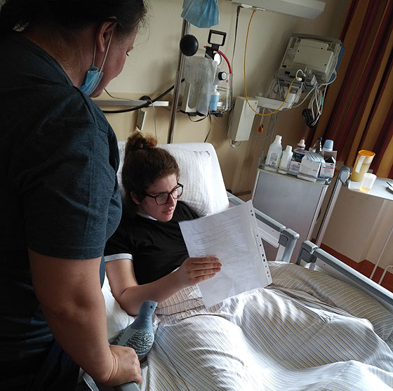 • hoffentlich schafft sie bald das Schlucken und Essen besser, denn laut Ärztin lässt sich gerade keine große Weiterentwicklung erkennen
