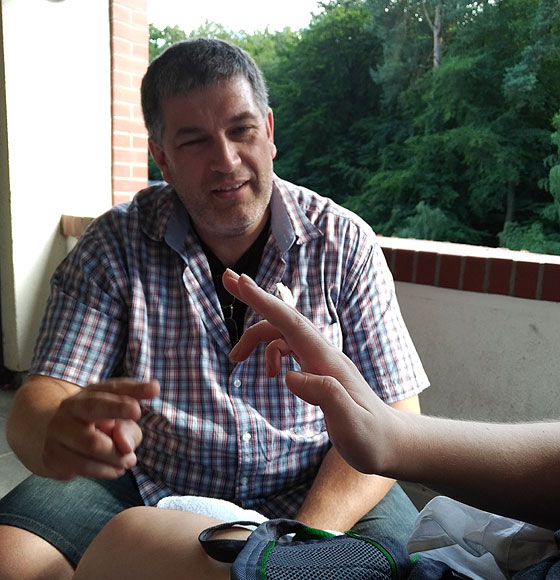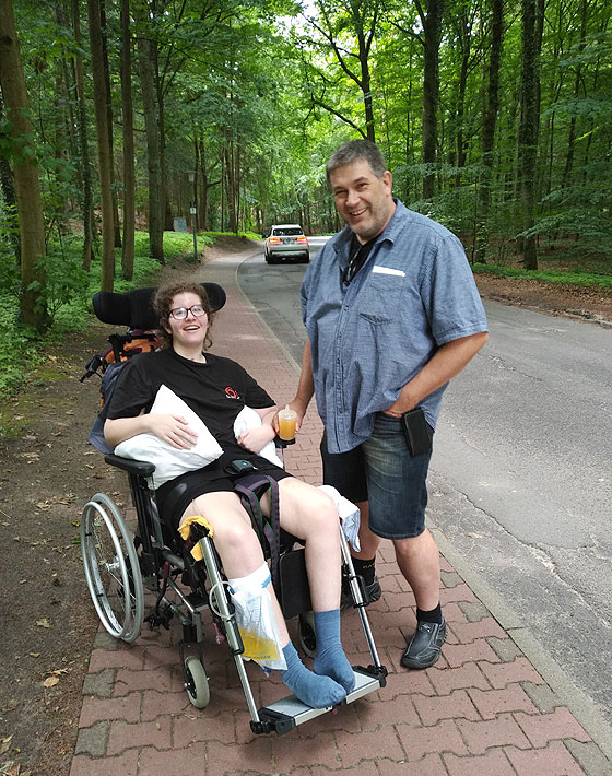 - Wenn wir mit ihr auf Achse sind, unterhält sie sich unterwegs auch immer wieder mal mit den Leuten die sie kennt, z.B. dem Personal der alten Station, den Therapeuten und anderen. Sie erkennt sie dann sogar ohne Maske.