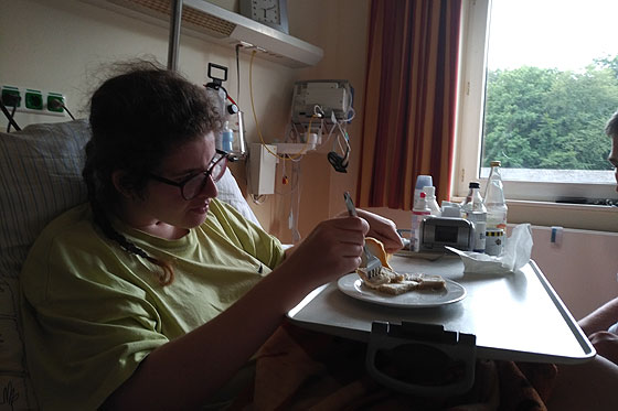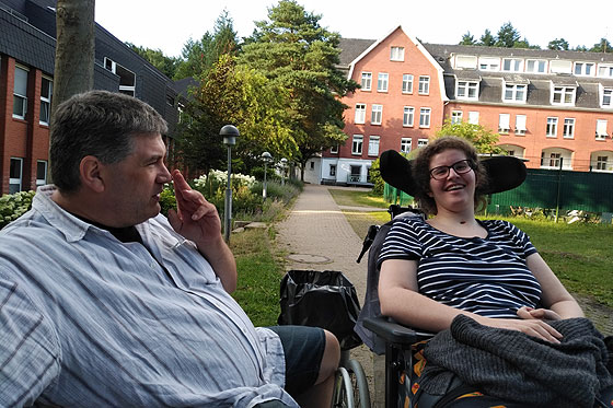 Uwe schrieb am Sonntag nach der Rückkehr jedenfalls folgendes: „Da wir Steph ja jetzt drei Wochen nicht selbst gesehen haben, konnten wir schon eine sehr schöne Weiterentwicklung feststellen. Es klappt schon einiges besser, als wir es selbst bisher erlebt hatten. Sowohl das Trinken und auch das selbstständige Essen. Wenn die Löffelhaltung mal richtiggestellt war, klappte es sehr gut. Und auch die linke Hand ist weit besser, als noch vor drei Wochen. Auch die Interaktion und der Wortschatz sind besser und sie ist bei vielen Gelegenheiten aufmerksamer dabei. So unser Eindruck.“